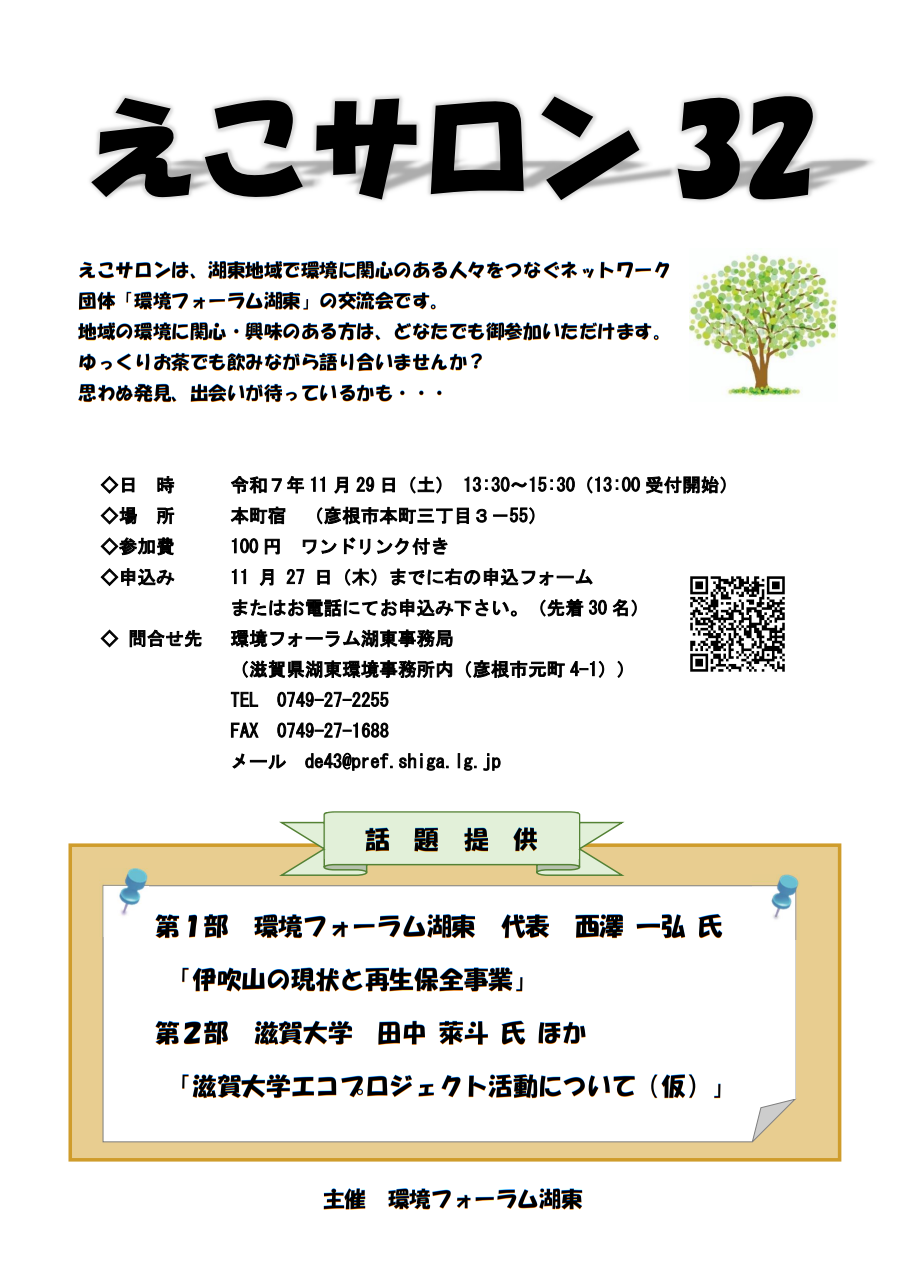 えこサロンは「環境フォーラム湖東」の交流会です。